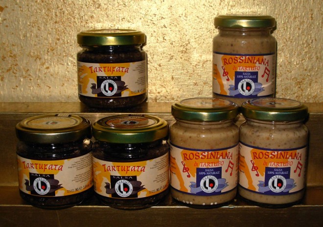 Questo kit comprende 2 specialità di tartufo: - 3 vasetti da 90 gr di salsa Rossiniana - 3 vasetti da 80 gr di salsa Tartufata
